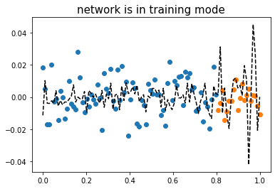 plt.title(r"network is in training mode",fontsize=15)Text(0.5, 1.0, 'network is in training mode')