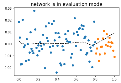 plt.title(r"network is in evaluation mode",fontsize=15)Text(0.5, 1.0, 'network is in evaluation mode')