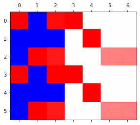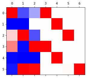plt.matshow(combinded2[-8:].data,cmap='bwr',vmin=-1,vmax=1)