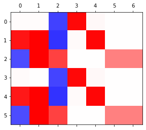 plt.matshow(combinded1[-8:].data,cmap='bwr',vmin=-1,vmax=1);