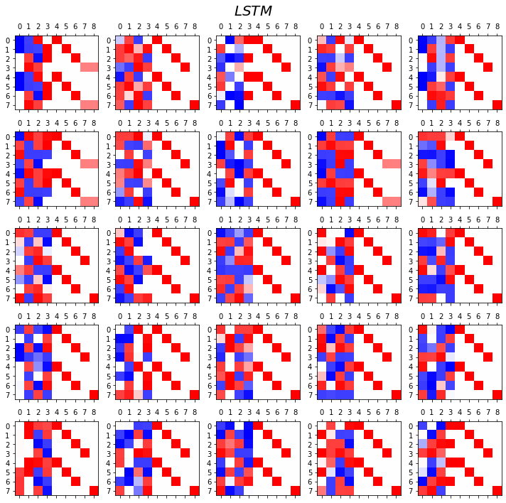 - 그 이유: RRN은 \({\boldsymbol h}_t\)의 값이 -1 혹은 1로 결정되는 경우가 많았음. 그러나 경우에 따라서는 \({\boldsymbol h}_t\)이 -1~1의 값을 가지는 것이 문맥적 뉘앙스를 포착하기에는 유리한데 LSTM이 이러한 방식으로 학습되는 경우가 많았음.