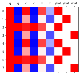 plt.xticks(range(combinded2.shape[-1]),labels=['g']*2 + ['c']*2 + ['h']*2 + ['yhat']*3);