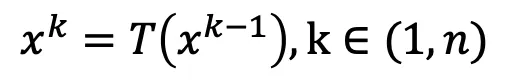 This means if I apply the mapping T on x for k times, x^k should be almost equal to x^(k-1)